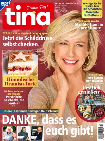 tina ist Deutschlands beste Ratgeber-Service-Zeitschrift für Frauen, die kompetente Tipps und wertvolle Ideen schätzen. tina zeigt Ihnen im Abo jede Woche ein Vorher-Nachher-Styling mit einer Rundum-Typberatung und vielen Accessoires.