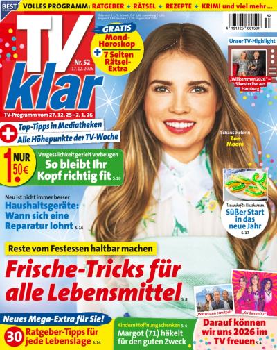 TV klar ist die wöchentliche, preisgünstige Fernsehillustrierte mit dem breiten Themenspektrum. Im Abo sichern Sie sich mit dieser Zeitschrift jederzeit das aktuelle Programm zu einem günstigen Preis!