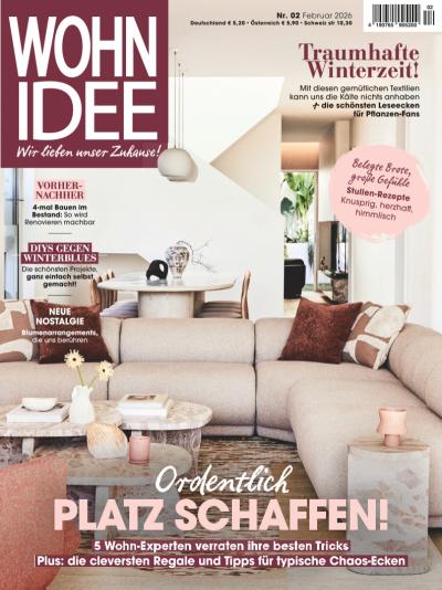 WOHNIDEE ist ein monatliches Wohnmagazin - lebensnah und stilsicher, kreativ und umsetzbar. Im Abo sichern Sie sich mit jedem Heft einzigartige Ideen und Tipps für zu Hause. Mit dieser Zeitschrift bereichern Sie Ihren Wohn-Alltag und sorgen für Abwechslung!